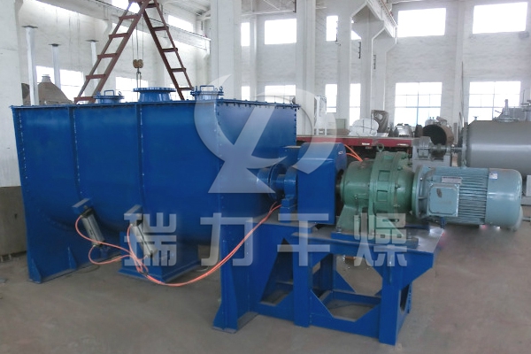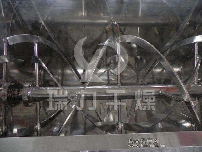 4、攪拌結(jié)構(gòu)中,正反旋轉(zhuǎn)螺條安裝于同一水平軸上,形成一個低動力高效的混合環(huán)境。