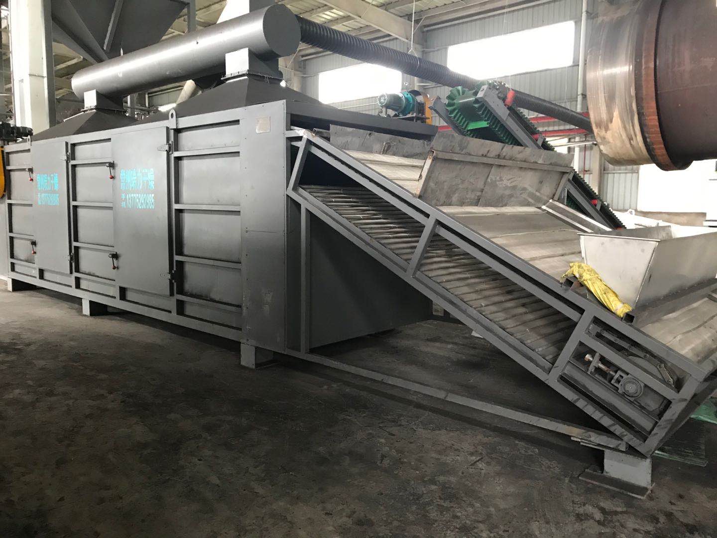 物料由加料器均勻地鋪在網帶上,網帶一般采用12-60目不銹鋼絲網,由傳動裝置拖動在干燥機內移動。干燥機由若干單元組成,每一單元熱風獨立循環,部分尾氣由專門排濕風機排出,廢氣由調節閥控制,熱氣由下往上或由上往下穿過鋪滿物料的網帶完成熱量與質量傳遞的進程,帶走物料水份。網帶緩慢移動,運行速度可根據物料溫度自由調節,干燥后的成品連續落入收料器中。上下循環單元根據用戶需要可靈活配備,單元數量亦可根據需要選取。